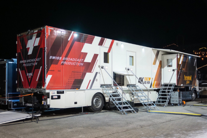 アルプスの山々を背景に村の中心部で開催されたこの試合は、従来のスタジアムのようなインフラがない中での困難なセットアップとなりました。brutal güet社にとって、このイベントは新型中継車の制作コンセプトを実際の生放送条件下で初めて稼働させる絶好の機会となりました。